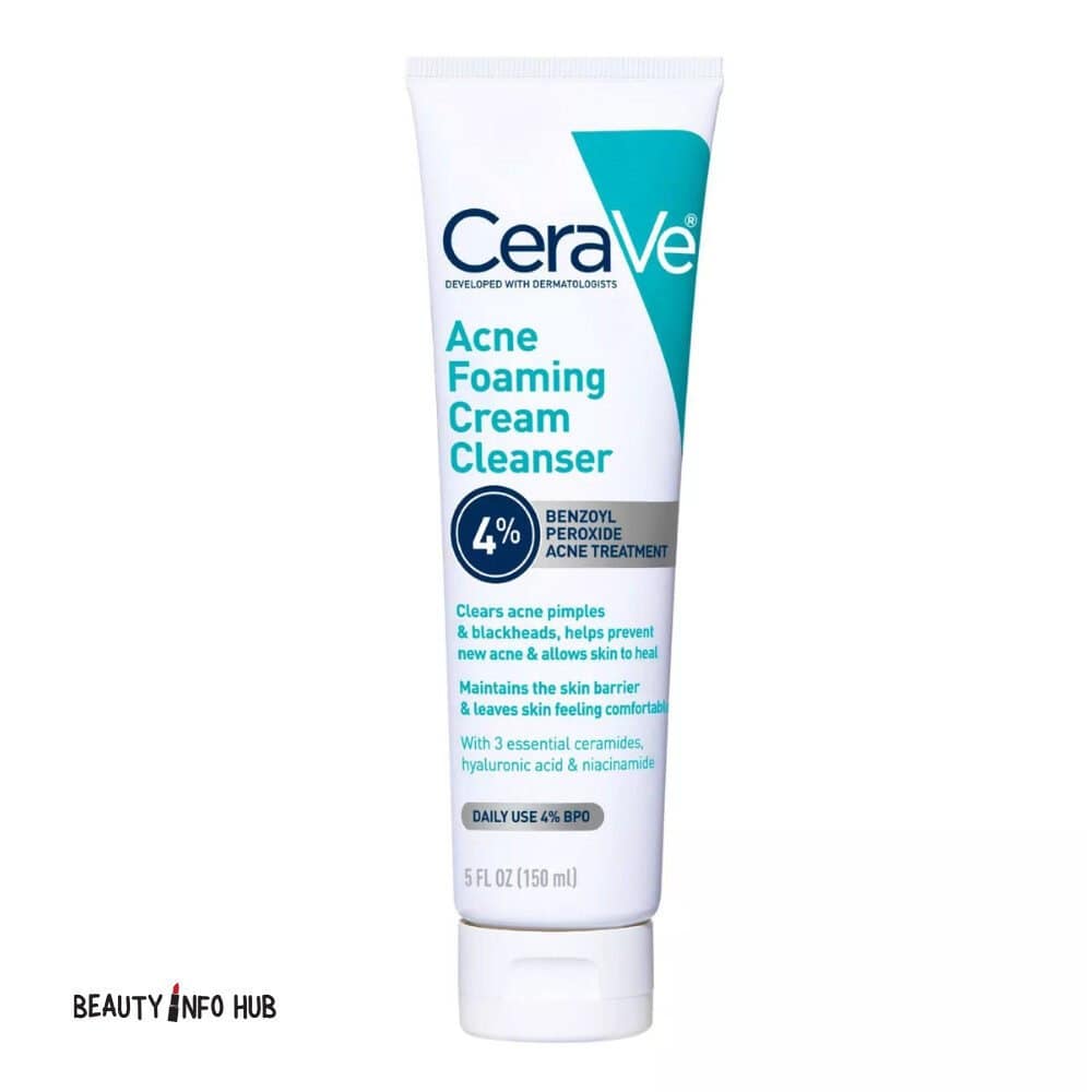 CeraVe Acne Foaming Cream Cleanser targets acne and blemishes with a creamy, foaming formula that cleanses without stripping the skin’s natural barrier. Infused with 4% benzoyl peroxide, ceramides, and niacinamide, it reduces acne, unclogs pores, and soothes skin, ideal for acne-prone skin.