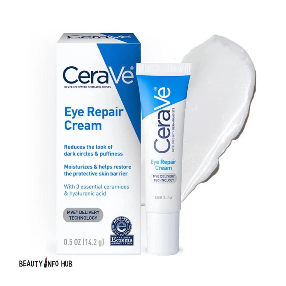 CeraVe Eye Repair Cream is formulated to reduce the appearance of dark circles and puffiness under the eyes. Infused with ceramides, hyaluronic acid, niacinamide, and a marine and botanical complex, it hydrates, brightens, and supports the delicate skin barrier, ideal for all skin types, including sensitive skin.