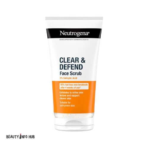 Neutrogena Clear & Defend Facial Scrub exfoliates to clear impurities and defend against breakouts. Formulated with salicylic acid and gentle exfoliants, it unclogs pores, reduces blemishes, and prevents future breakouts, leaving skin clear, smooth, and balanced.