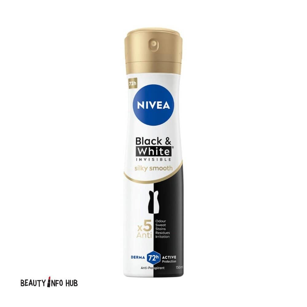 According to experts, Nivea Black & White Invisible Silky Smooth Deodorant Spray 150ml is an excellent choice for those seeking long-lasting sweat and odor protection with a smooth, soft underarm feel. Its silky formula ensures freshness and reliability. Tip: Ideal for daily use by individuals needing a fragrance-enhanced, dermatologically tested deodorant spray for a comfortable, stain-free experience.