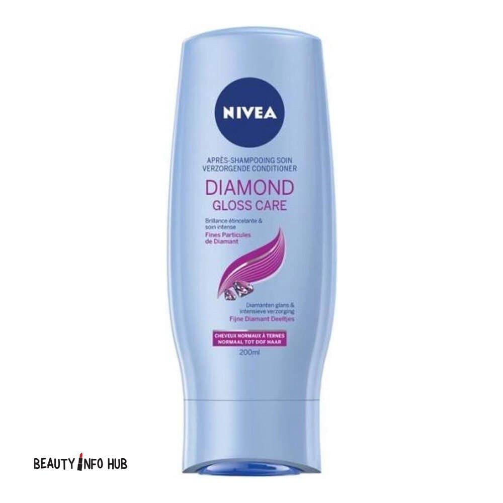 After shampooing, apply Nivea Diamond Gloss Conditioner to wet hair, focusing on the lengths and ends. Massage gently, leave on for 1-2 minutes, then rinse thoroughly with lukewarm water. Use daily or as needed on clean hair.