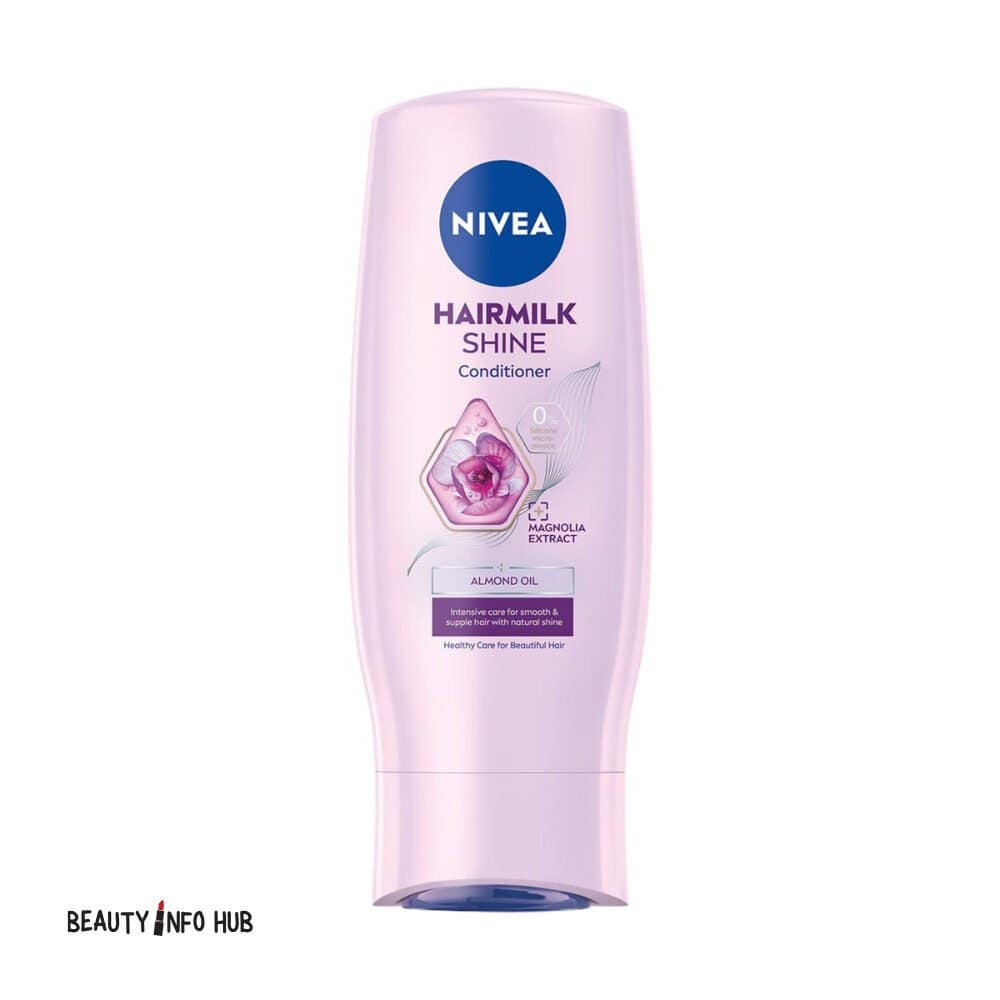 Nivea Hairmilk Shine Normal Conditioner nourishes normal hair, enhancing shine with milk proteins and natural extracts. Its lightweight formula detangles and leaves hair silky smooth, ideal for those seeking a radiant, healthy hair finish.